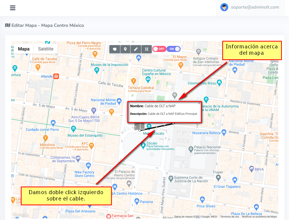 Una vez que demos click en el segundo marcador, nos saldrá una ventana donde tendremos que poner la información acerca del cable, después damos click en Si, estoy seguro.