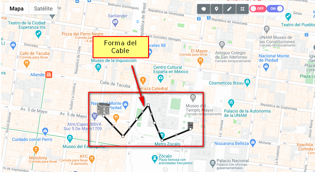 Al hacer los pasos anteriores la forma de cable de editara, de igual manera se crearán mas puntos donde podemos seguir cambiando la forma del cable.