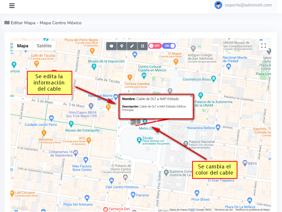 Si deseamos editar la información de un cable podemos seguir los siguientes pasos.
