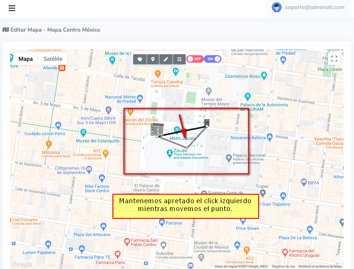 Debemos dar click en el primer marcador, después damos click en el segundo marcador
