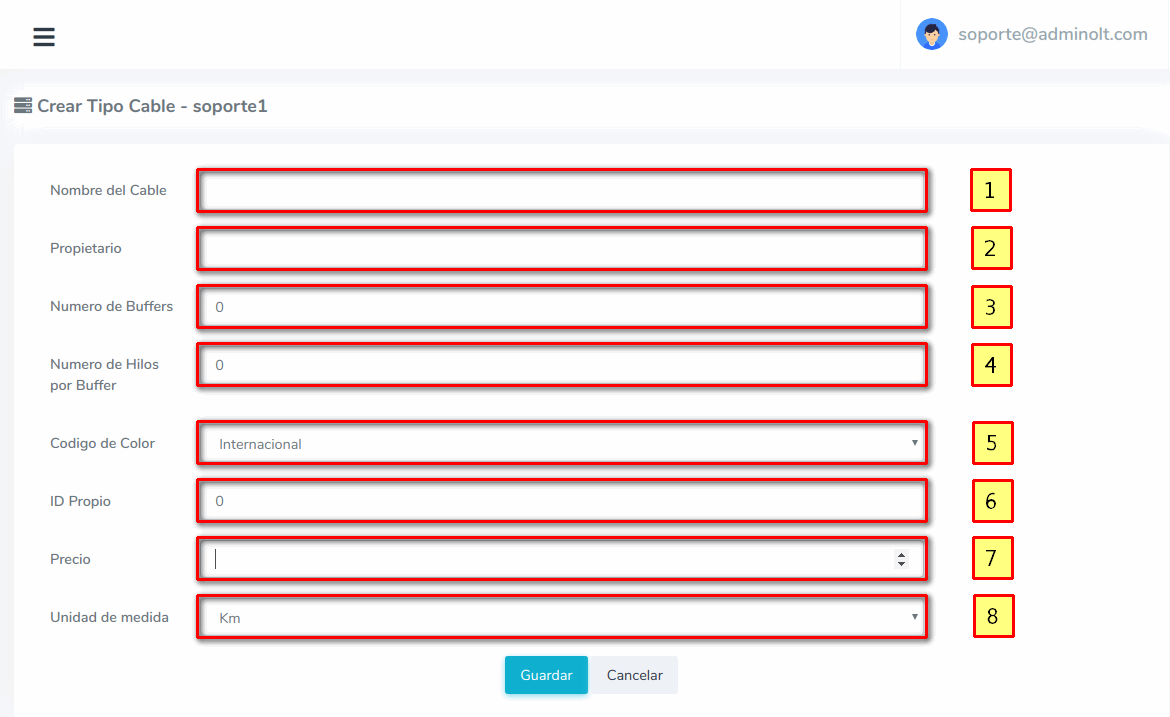 - 1.- Nombre del Cable: Servirá para identificar el cable al momento de crear cables en el mapa.