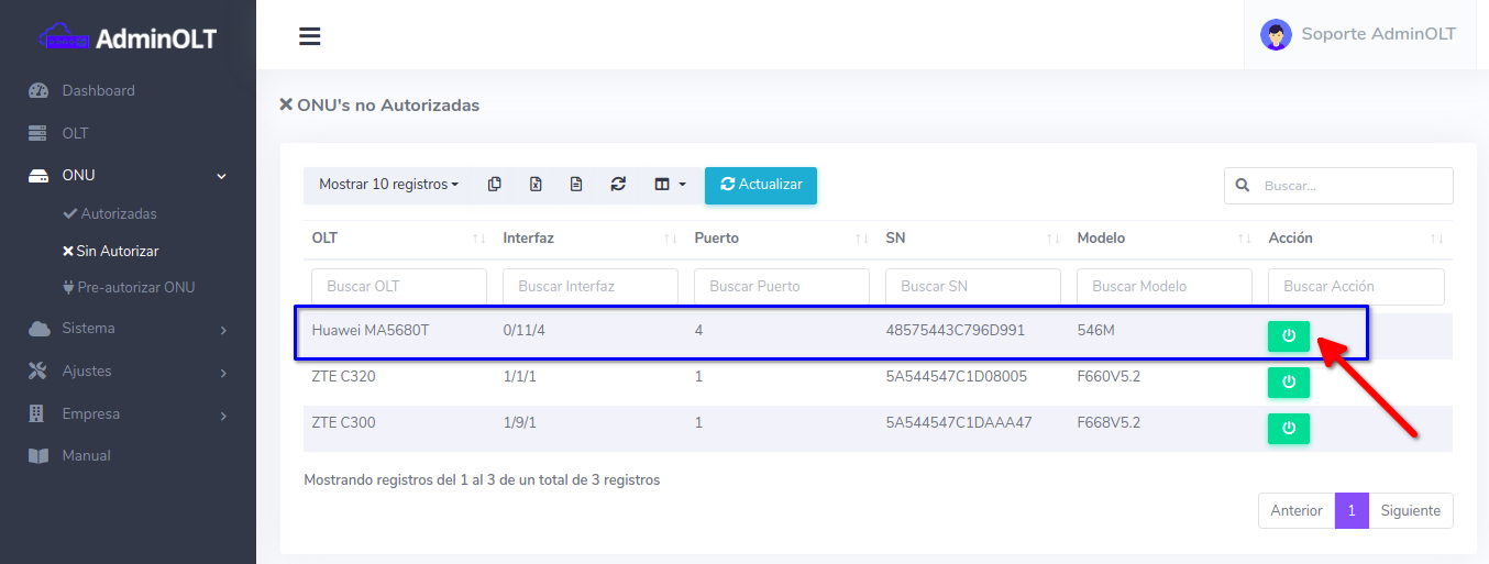 - Crear la Wan IP a la ONU desde la sección WAN IP de una ONU en AdminOLT