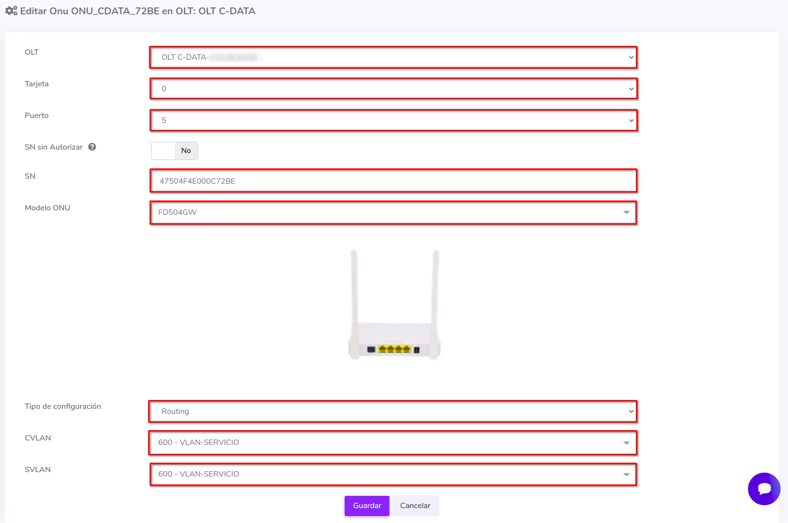 - Editar ONU en AdminOLT desde Detalles de ONU