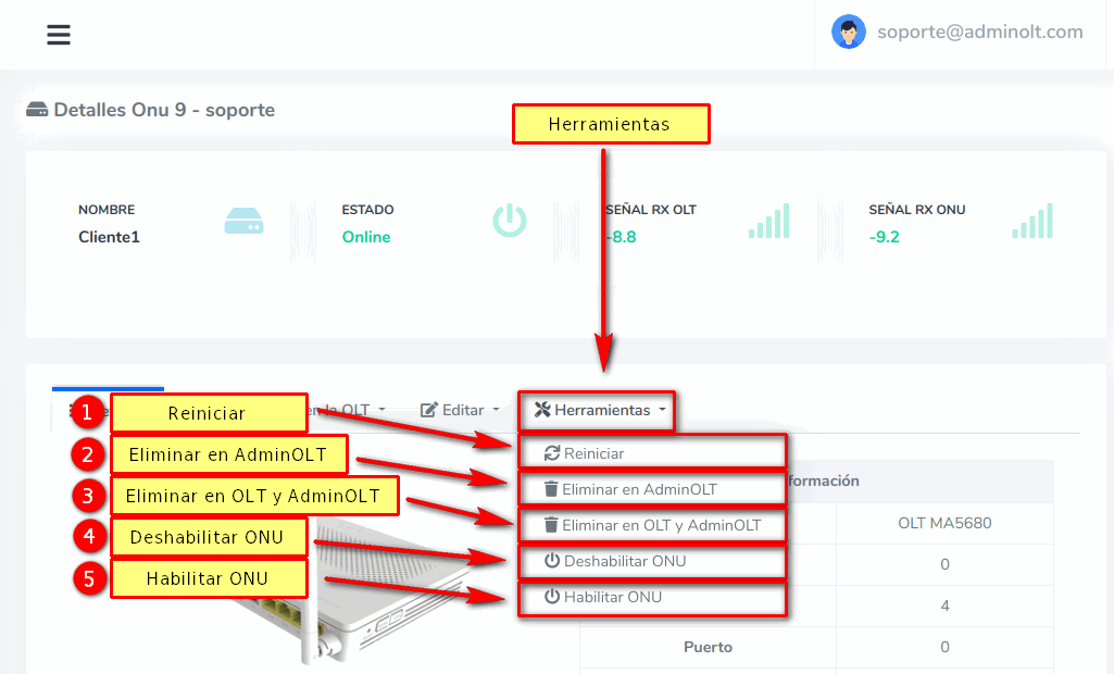 - Editar Información en AdminOLT