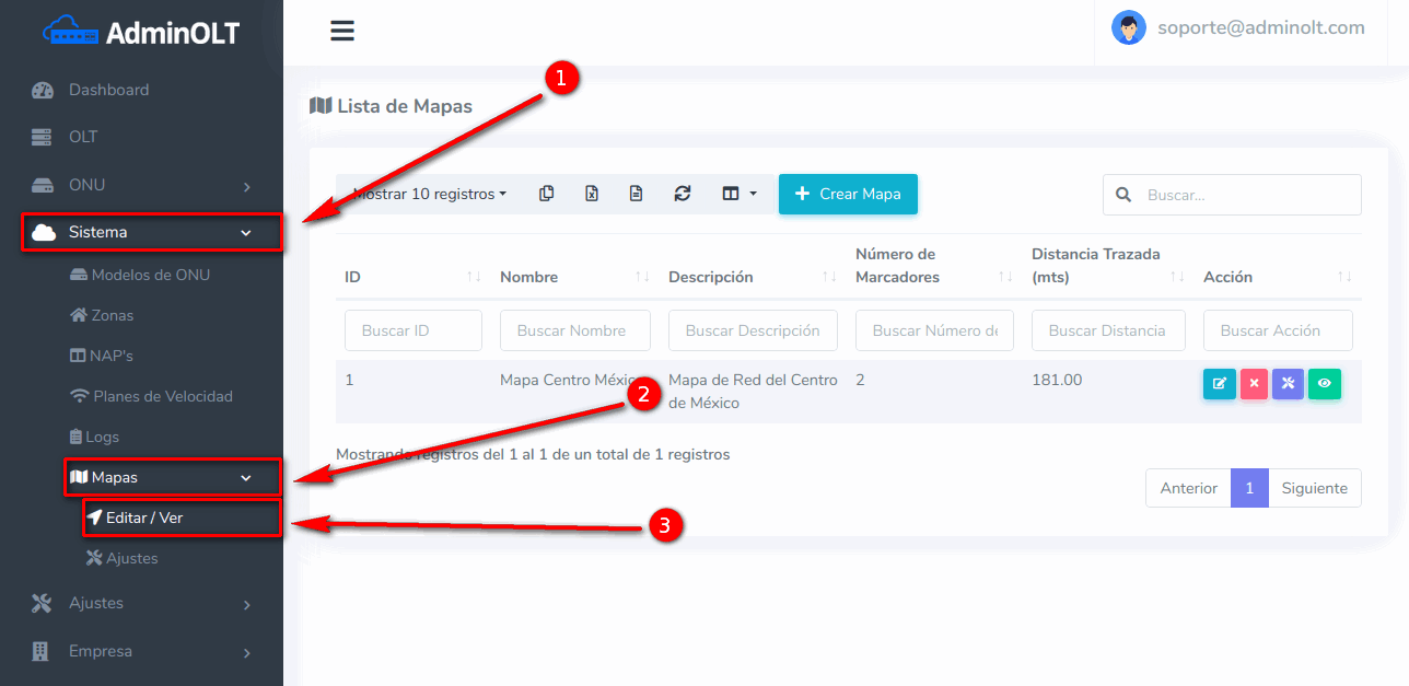 1 Ir a la sección Sistema > Mapas > Editar / Ver > Lista de Mapas